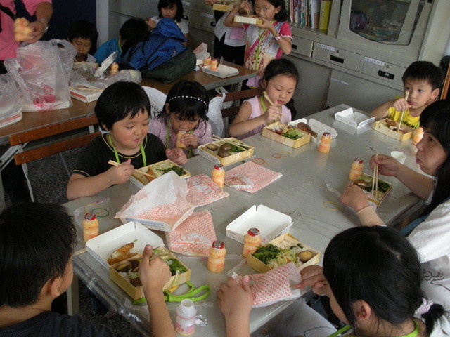 傳愛課輔班參加台中烏日鄉聖光堂教會及溪頭森林遊樂區戶外踏青一日遊的,午餐情形。