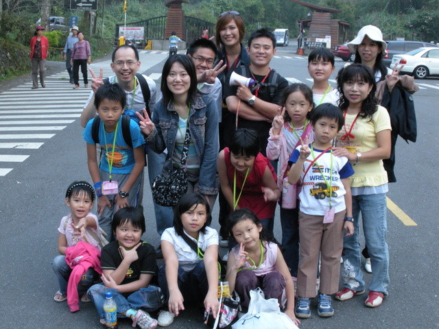 傳愛課輔班溪頭森林遊樂區全體合照,有學童的媽媽、正雄哥、丁師母、榮美老師、美琪老師、俊貴老師、廷儒哥哥。