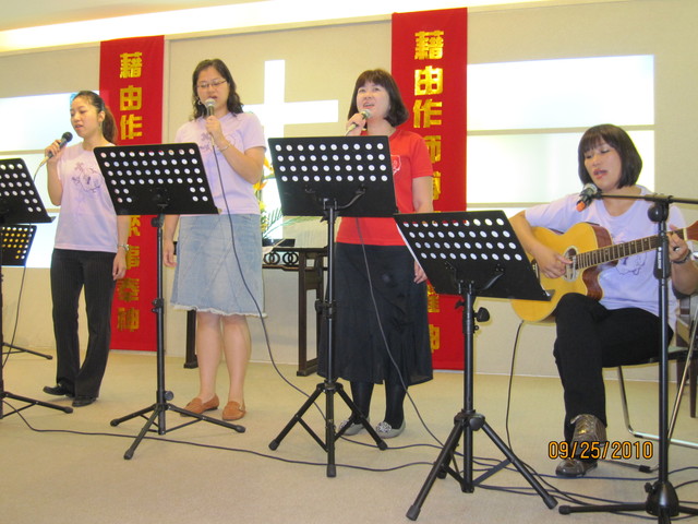 講座一開始有三峽復興堂親子小組的詩班獻詩,還有兩位姊妹作見證。