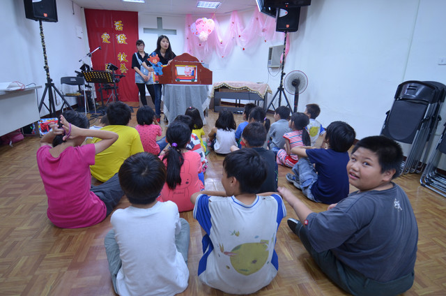 透過合作夥伴「中華電信基金會」的介紹,紙芝居兒童劇團今天來到鶯歌傳愛課輔班演出。
