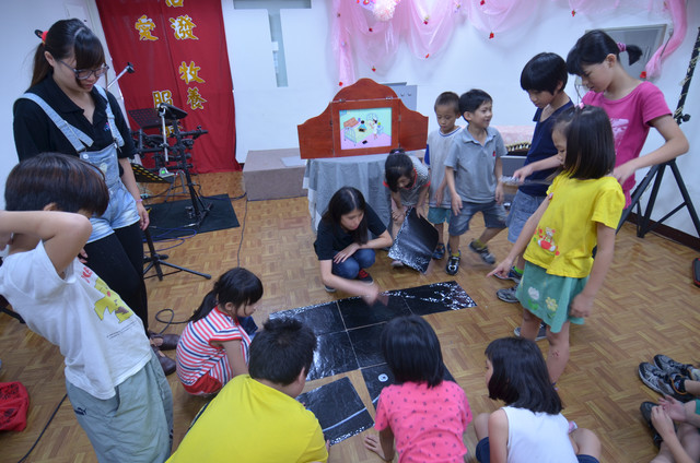 除了兒童劇場的演出外,老師們也親自帶領孩子們玩遊戲、作手工。帶領團隊的教授說,你們的孩子很有回應,但得出老師平常非常用心的教導,孩子們都表現的很好......