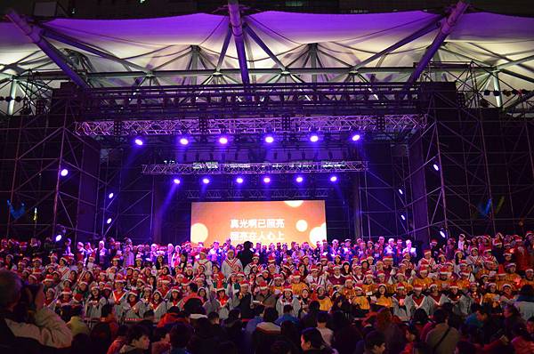 當然,對我們來說,新北耶誕歡樂城的意義,不只是可以參與演出。更重要的是,可以在這個機會傳揚耶穌基督的福音,因此活動中,我們的成員也一起參與了聯合大詩班的演出,一起唱出「平安夜」、「普世歡騰」、「平安夜裡真平安」等聖誕歌曲。