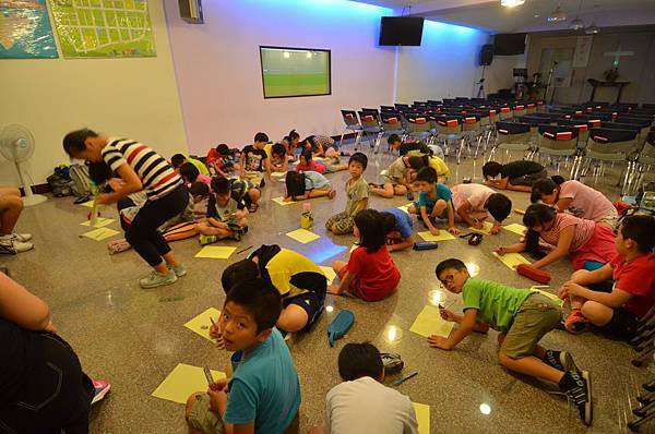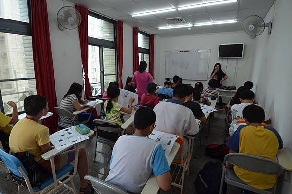 五樓的教室裡,傳愛課輔班的國中生正在上英文對話,由傳愛課輔班的淑君校長親自教學,校長的目標是未來孩子們可以參加全民英檢的考試。