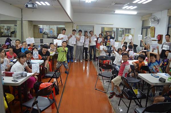 只看到大哥哥們的巧手一勾、妙筆一畫,每個孩子可愛的特徵就這樣描繪在紙上,顯得生動又活潑。課輔班裡面有些孩子的美術天份也不錯,或許有一天他們也會被激勵成藝術家。