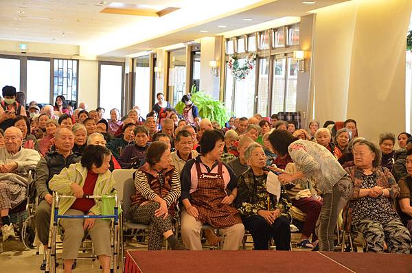 三峽復興堂全體總動員,從小朋友到學生、從成人到年長的肢體都參與其中,安養院的老人家也玩得相當盡興。會後該院致贈感謝錦旗一面,由丁帥之牧師親自領獎。
