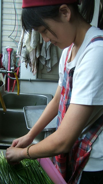 傳愛水餃進入暑假七月份過後,漸漸忙碌起來,因為訂單量增加,小封姊妹的妹妹孟萱也到傳愛水餃來幫忙,孟萱做事仔細在切菜前都會事先拍好喔