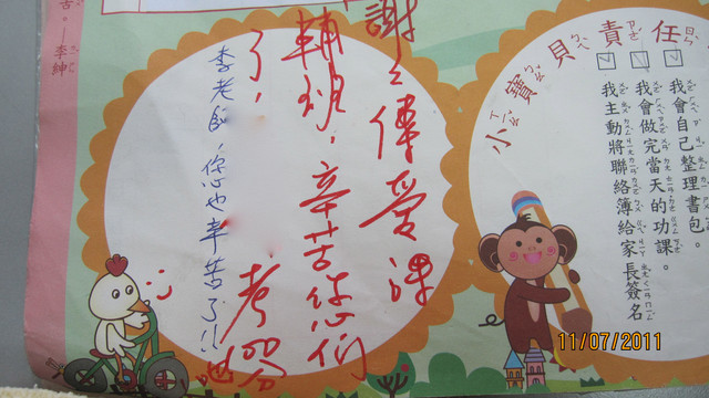 學校的老師偶爾會藉著聯絡簿跟傳愛課輔班的老師聯繫事情,前些天鶯歌的老師收到了來自導師的感謝,原來這學期第一次參加課輔班的小豪(化名)數學考了一百分。