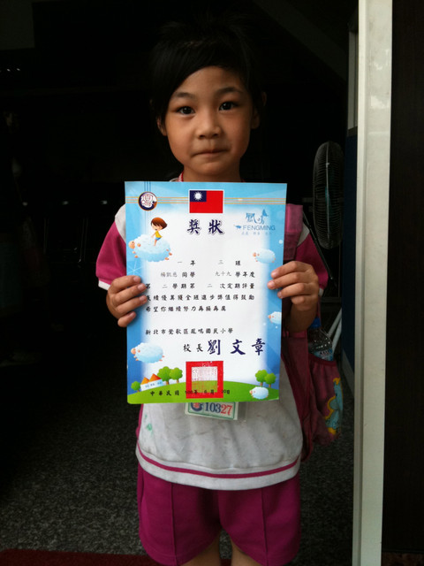 這學期鶯歌傳愛課輔班首次接納了來自鳳鳴國小的四個孩子,學期的最後一天,有兩名孩子拿到了課業成績優異的獎狀。
