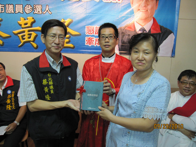 縣議員蔡黃隆先生,長期投入關懷社會弱勢及新住民,今天特別在百忙之中,參與了「婚姻經營」的講座。並且於會後,在丁牧師的陪同下,進一步了解社會關懷部目前所推動的各項工作。